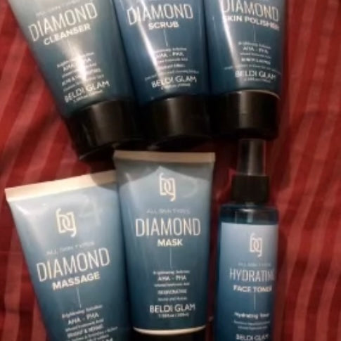 Step 1: Diamond Cleanser – Use daily. Massage a small amount on damp skin for 2 minutes. Rinse with warm water or a damp cloth.